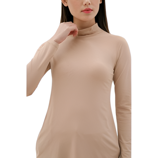 เสื้อยืดลำลองแขนยาวคอเต่าผ้าไนลอนสแปนเด็กซ์สวมใส่สำหรับผู้หญิงรู้สึกว่ามือนุ่มทนทาน