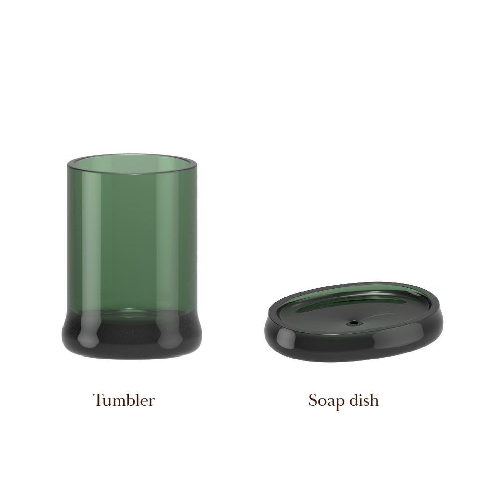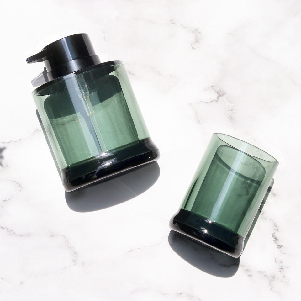 Tuscan ชุดอุปกรณ์เสริมพลาสติกสีเขียวใสสำหรับห้องน้ำที่วางสบู่ที่วางแปรงสีฟันที่วางแปรงในห้องน้ำ