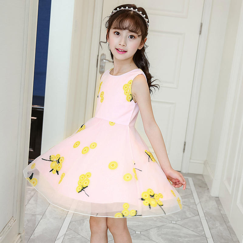ชุดเดรสลูกไม้สำหรับเด็กผู้หญิงลายดอกไม้สำหรับฤดูร้อน พร้อมงานปักลายดอกไม้
