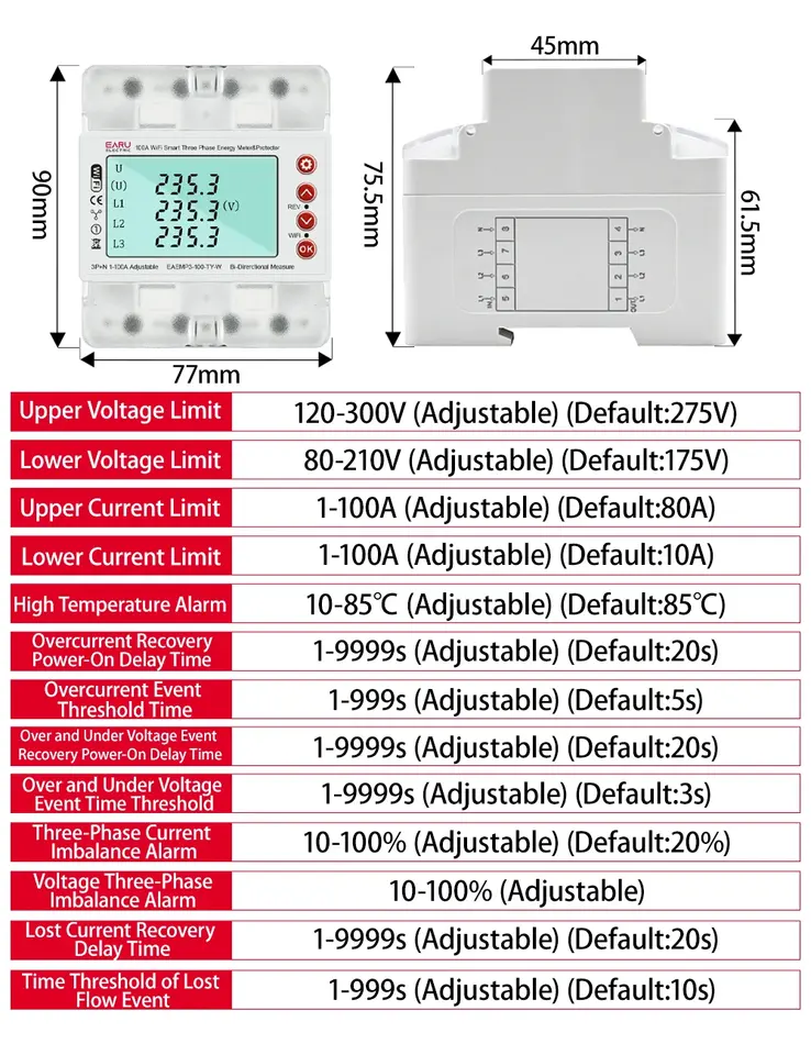 Lower Current Limit:1-100A (Adjustable) (Default:10A)