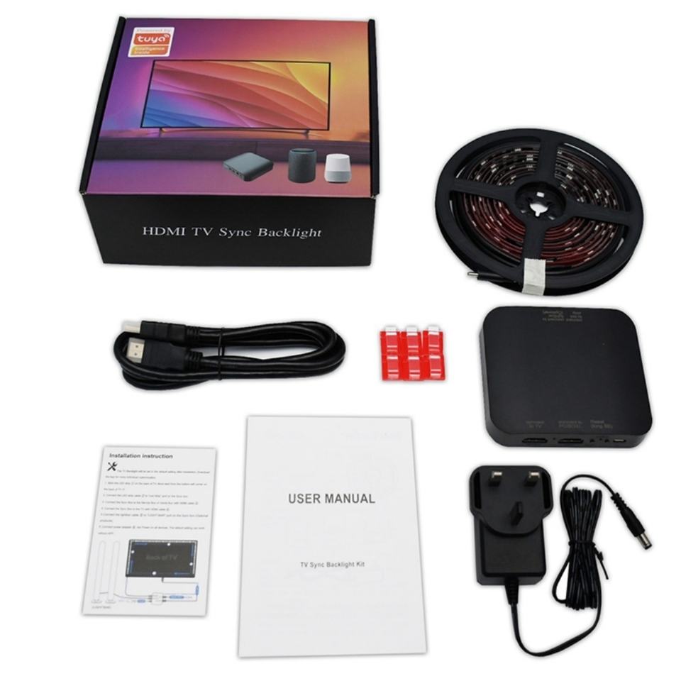 ไฟ LED แถบสำหรับทีวี ยี่ห้อ Tuya App ชุดอัพเกรด ซิงค์กับแสงไฟรอบทิศทางของทีวีได้อย่างรวดเร็ว