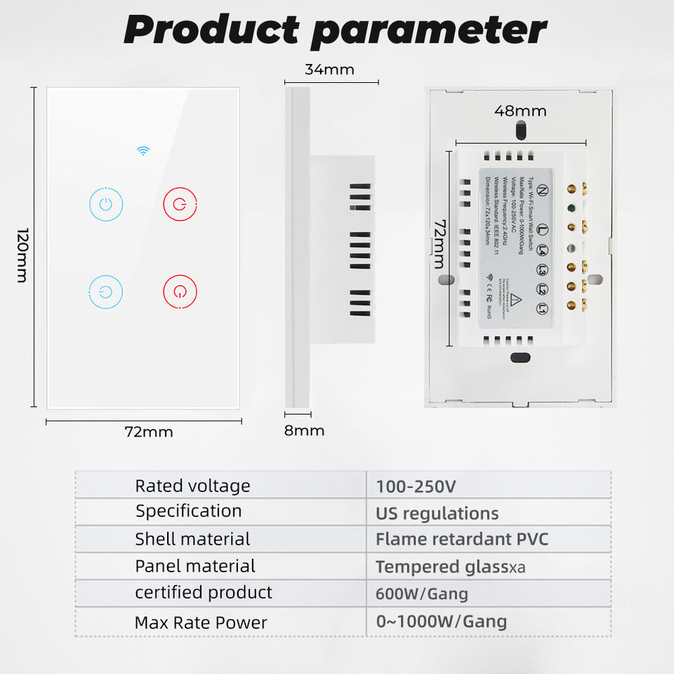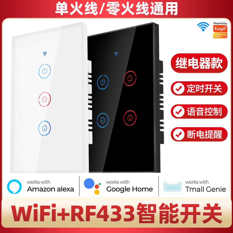 Tuya กราฟฟิตีไวไฟสวิตช์ติดผนังแบบสัมผัส1แก๊ง2.4กิกะเฮิร์ตซ์ RF433 IP20ควบคุมแอป Alexa สำหรับไฟบ้านอัจฉริยะ