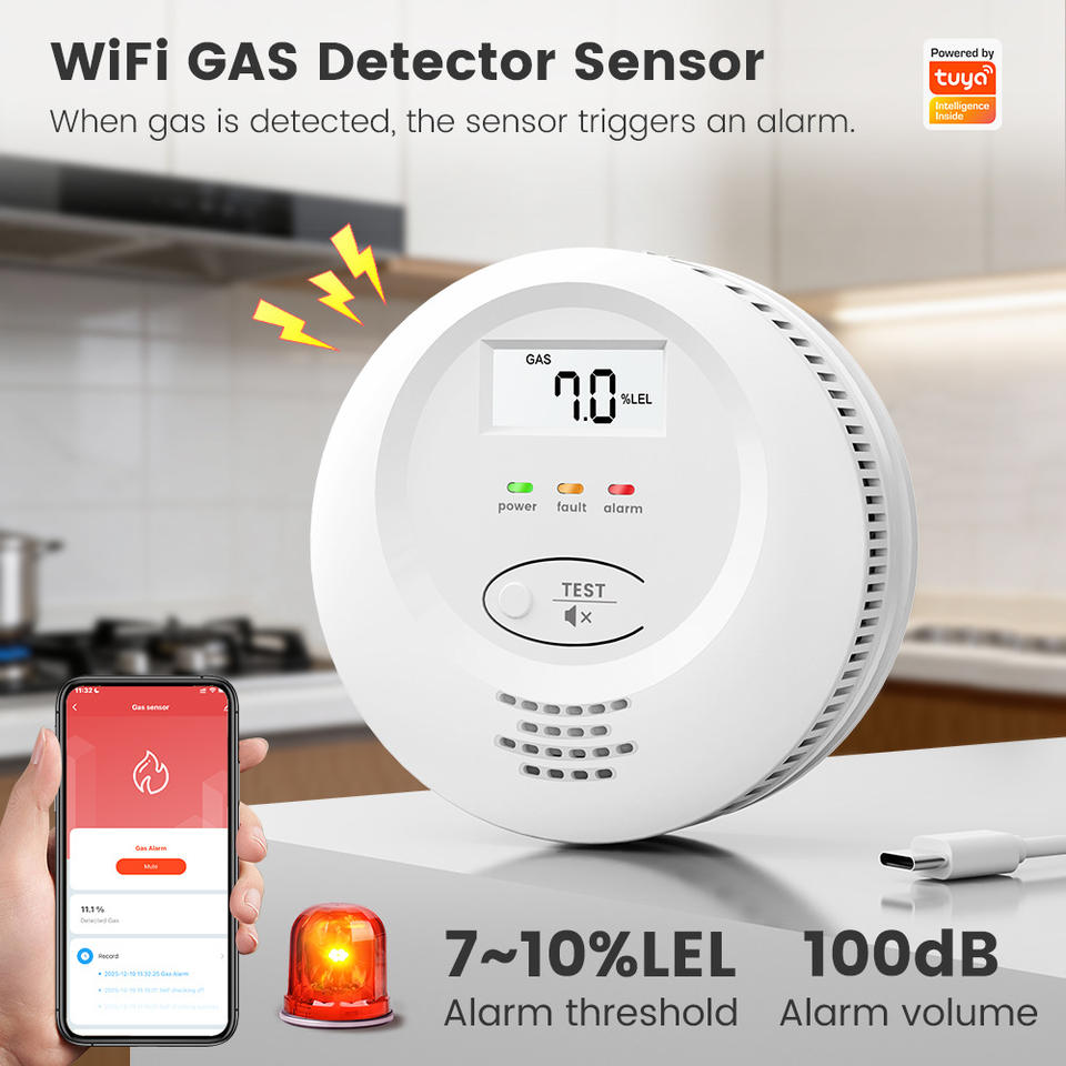 ทูย่าสมาร์ทเครื่องตรวจจับก๊าซ 5V เซ็นเซอร์เตือนภัยแบบติดเพดานไวไฟเพื่อความปลอดภัยในครัวบ้าน