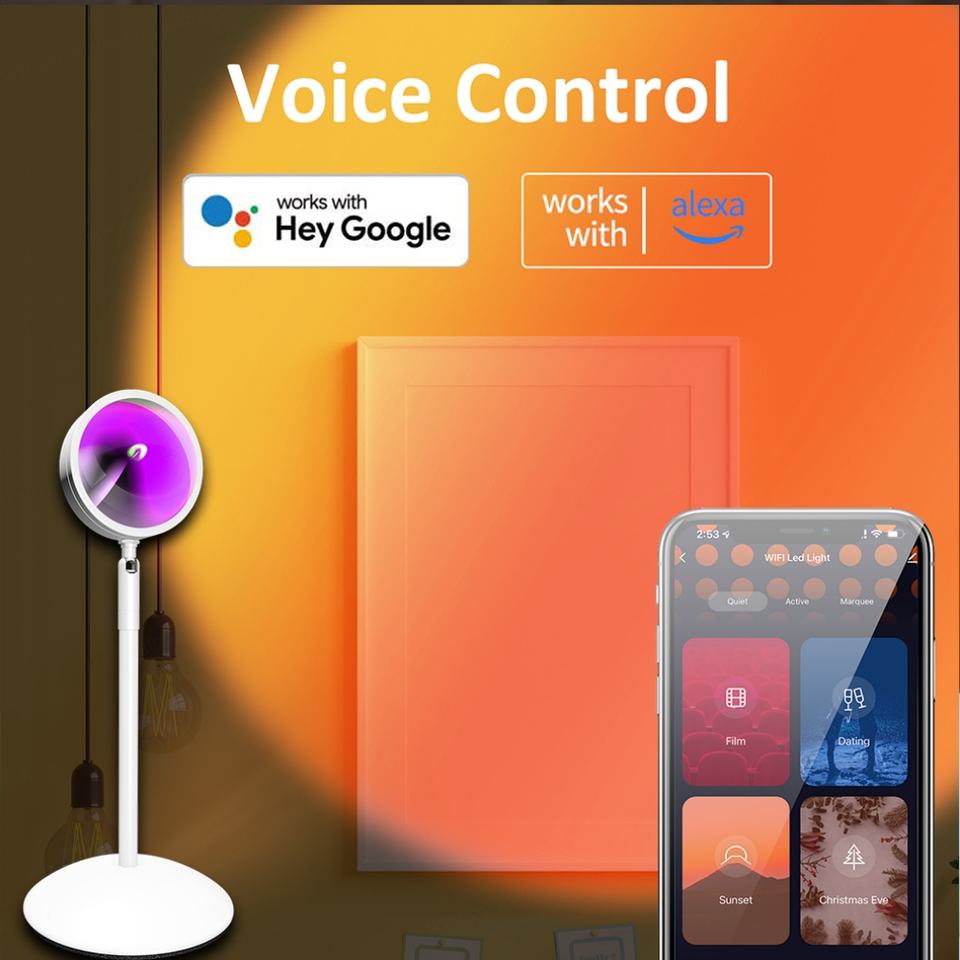 โคมไฟพระอาทิตย์ตกอัจฉริยะ Tuya พร้อมโปรเจคเตอร์แสงพระอาทิตย์ตก ควบคุมผ่านแอพ รองรับ WiFi สำหรับตกแต่งห้อง ถ่ายภาพ ของขวัญวันเกิด