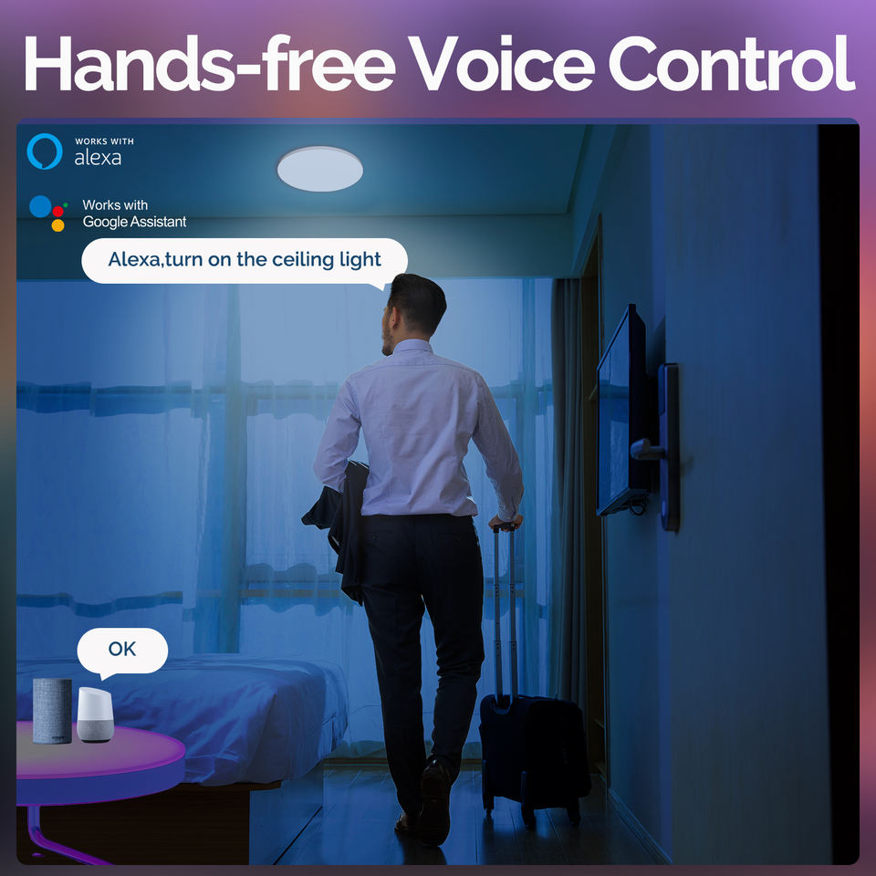 Tuya WIFI 5-way Dual-mode RGB+WW+CW Round Ceiling Lamp AC220V 24W Smart Life for Alexa Google Assistant Dimming Illusion Lamps