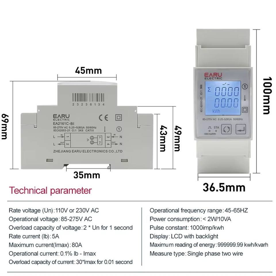 การวัดช่วงพลังงาน:999999.99 kwh/kvarh