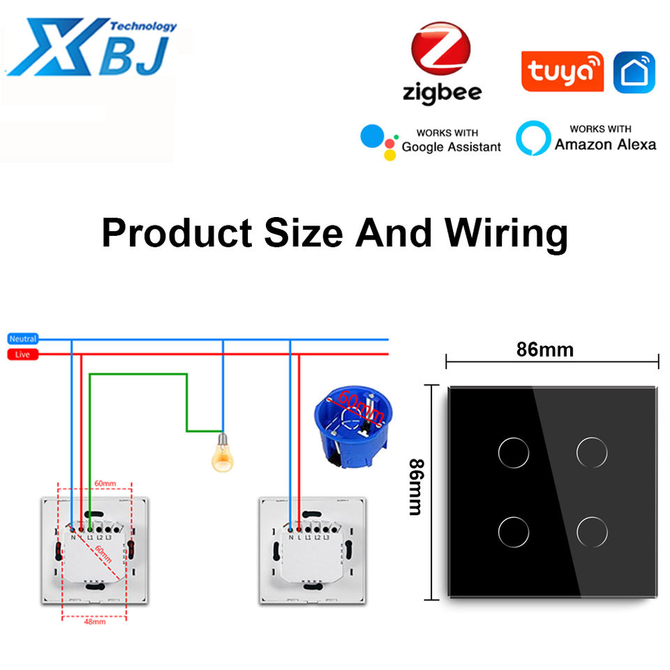 Tuya สวิตช์อัจฉริยะระบบสัมผัสอัจฉริยะ3.0 EU UK, 1/2/3/4แก๊งขั้วคู่10A สายกลางสุดที่ต้องการการควบคุมด้วยเสียงผ่าน Google Home