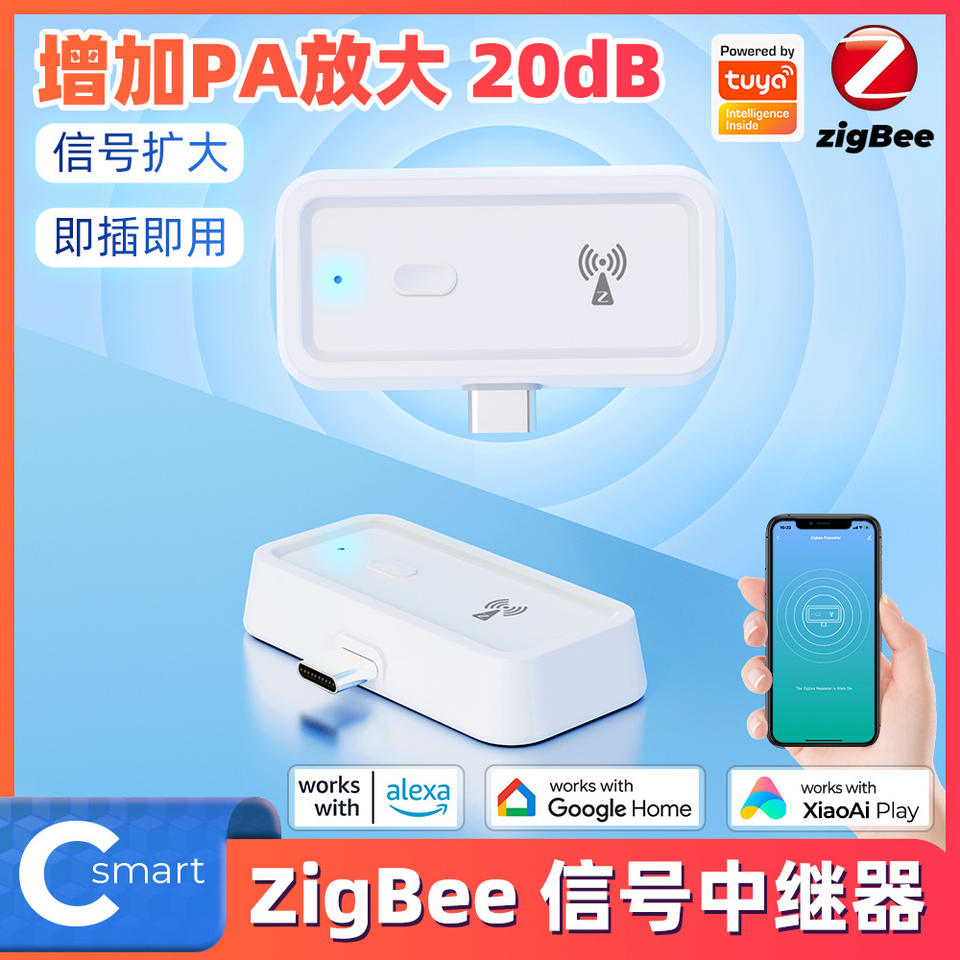 Tuya เครื่องขยายสัญญาณแบบ ZigBee 20dB ขยายสัญญาณแบบ C, เครื่องขยายสัญญาณบ้านอัจฉริยะใช้ไฟจาก USB