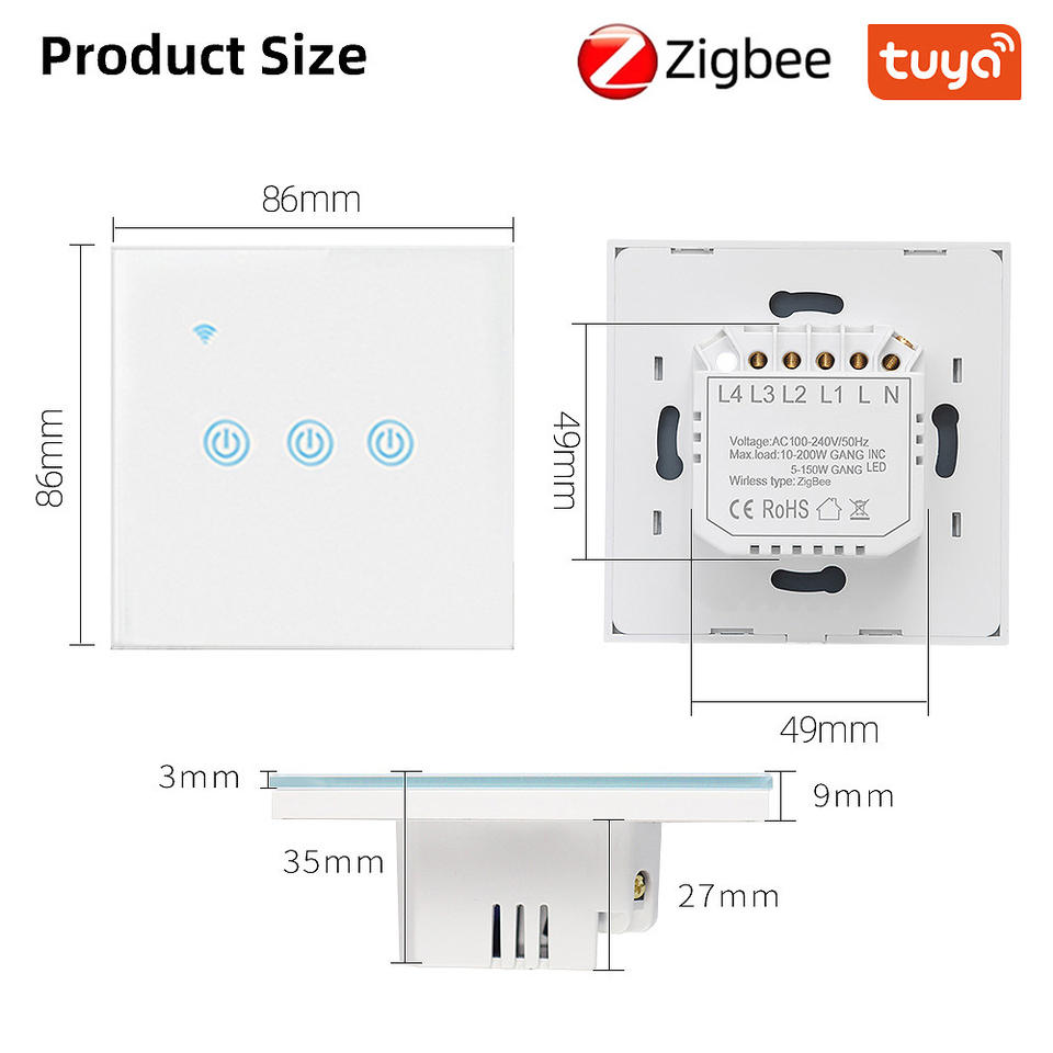 ทูยา ซิกบีสมาร์ทสวิตช์ 86 มม. แผงกระจกนิรภัย 10A 220V การควบคุมด้วยเสียงแอปรีโมท