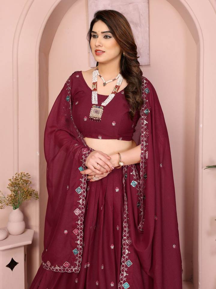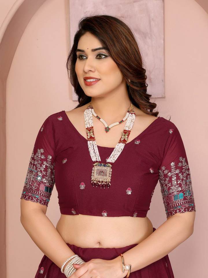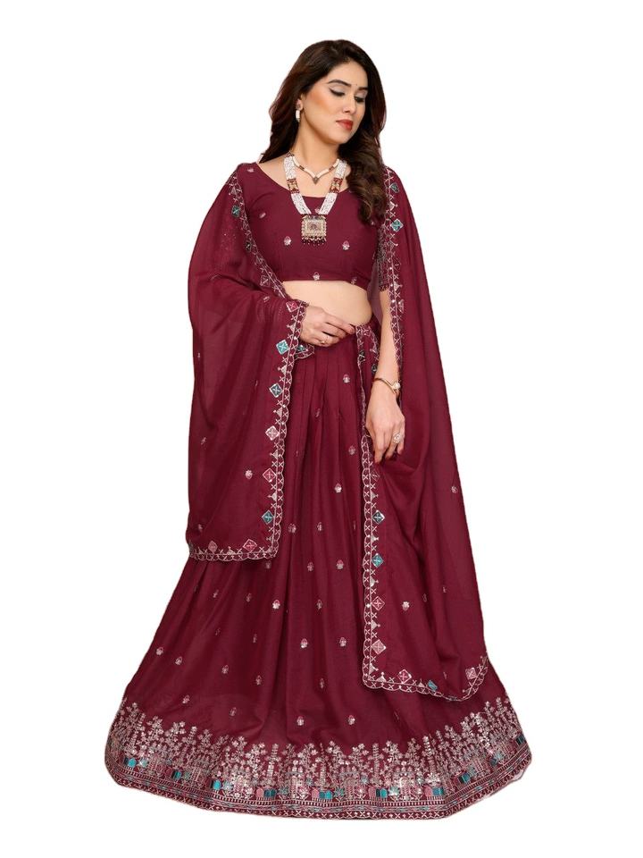 ชุดเลเฮนกาโชลีผ้าปักลายสไตล์ดาราจอร์เจตต์ ง่ายต่อการสวมใส่ แฟชั่นทันสมัย พร้อมผ้าคลุมไหล่ จาก SIE