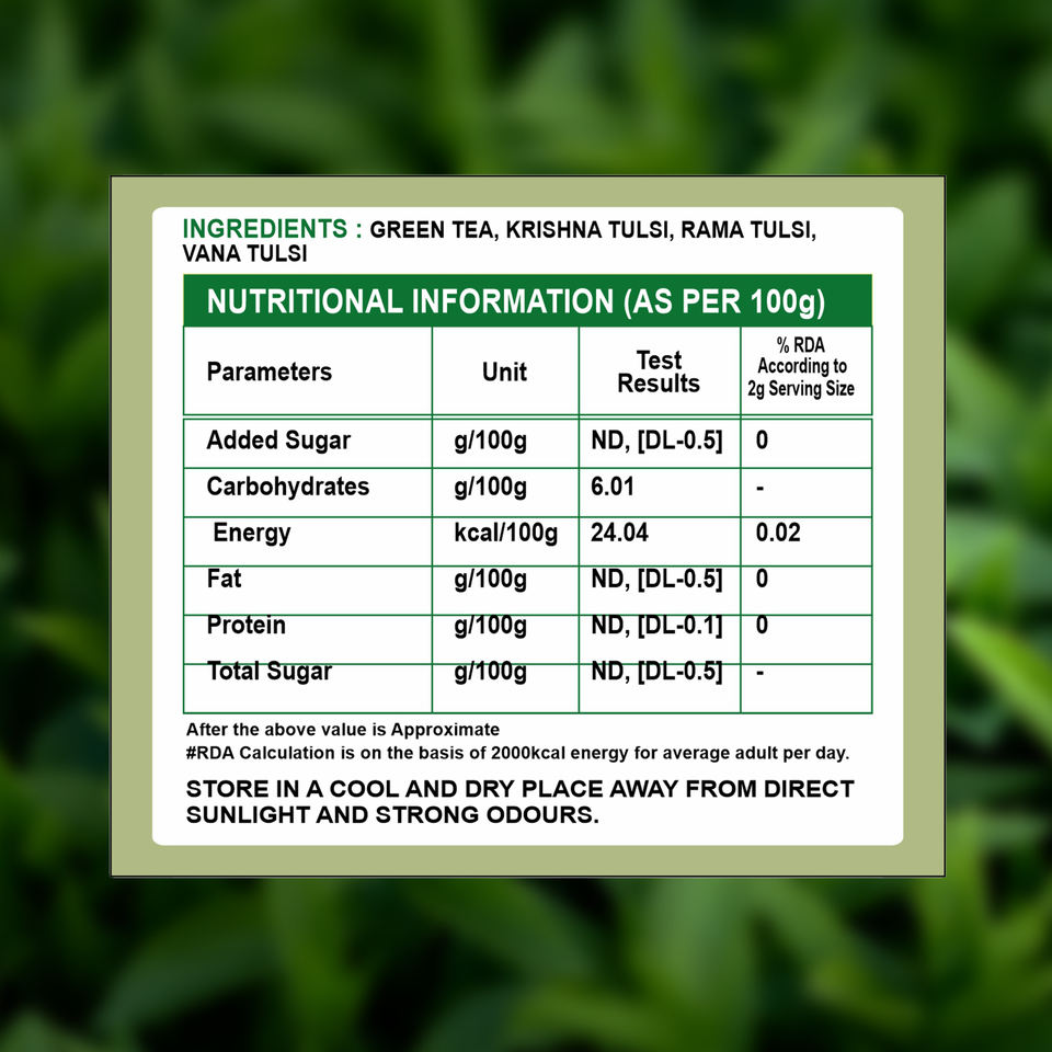36 กรัม (20 ซองชา * ซองละ 1.8 กรัม)