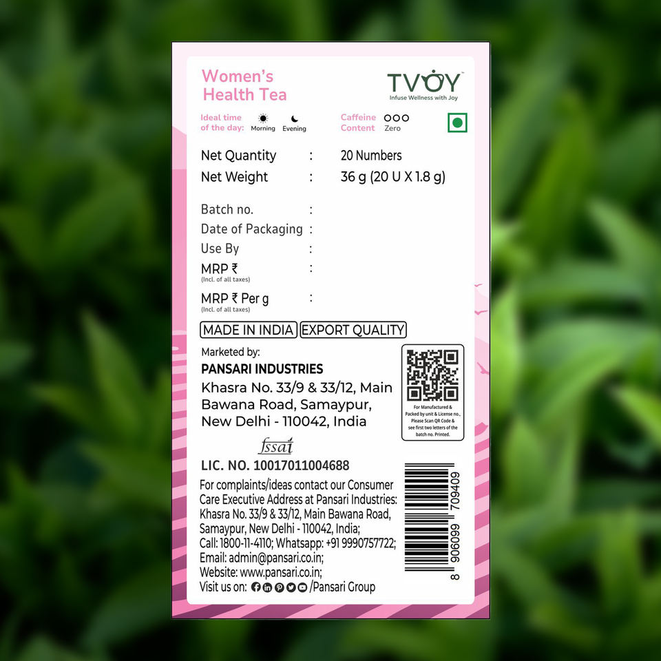 ชาเขียวเพื่อสุขภาพผู้หญิงทีโว่ 20 ซองชา (1.8 กรัม) บรรเทาความเครียด ความรู้สึกไม่สบาย และส่งเสริมสุขภาพอย่างเป็นธรรมชาติ