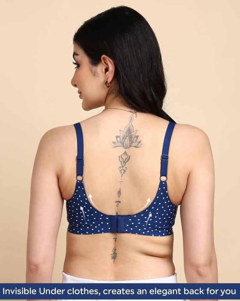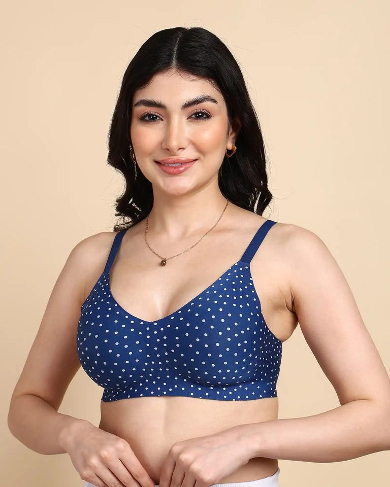 Tweens invisi-Fit บราพิมพ์ลาย, บราไร้รอยต่อสีฟ้าเข้มสไตล์ใช้ในชีวิตประจำวัน