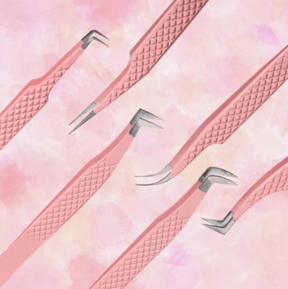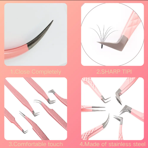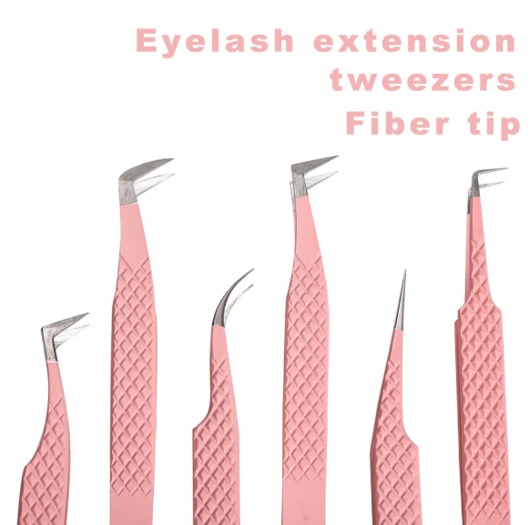แหนบสำหรับขนตา90องศาพร้อมที่จับปลายไฟเบอร์แหนบสำหรับต่อขนตาแบบปรับแต่งโลโก้ได้ตามต้องการ