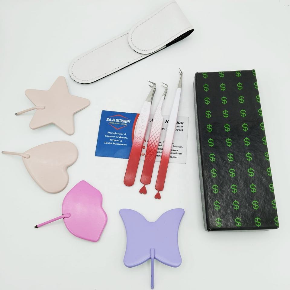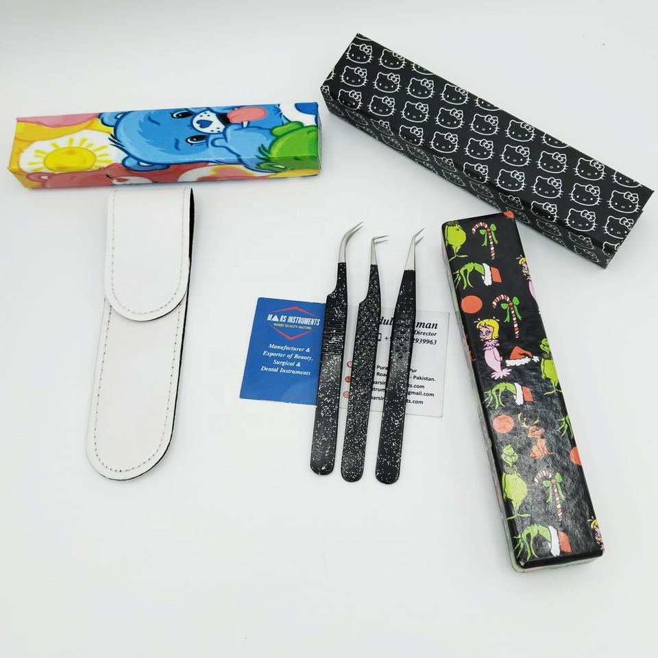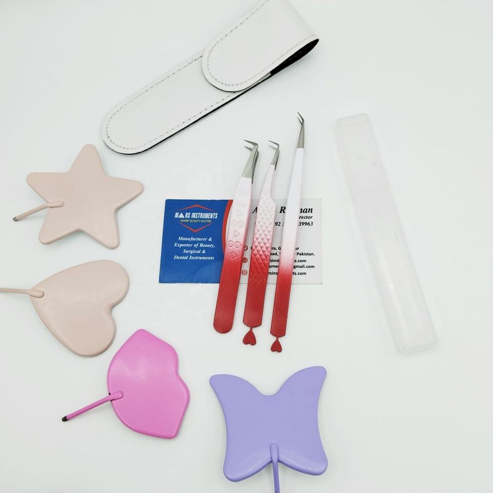 แหนบต่อขนตาสแตนเลสรูปหัวใจปลายไฟเบอร์แบบยั่งยืนพร้อมบรรจุภัณฑ์แบบกำหนดเอง
