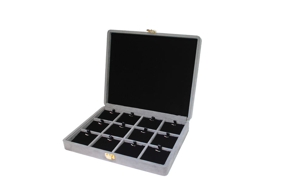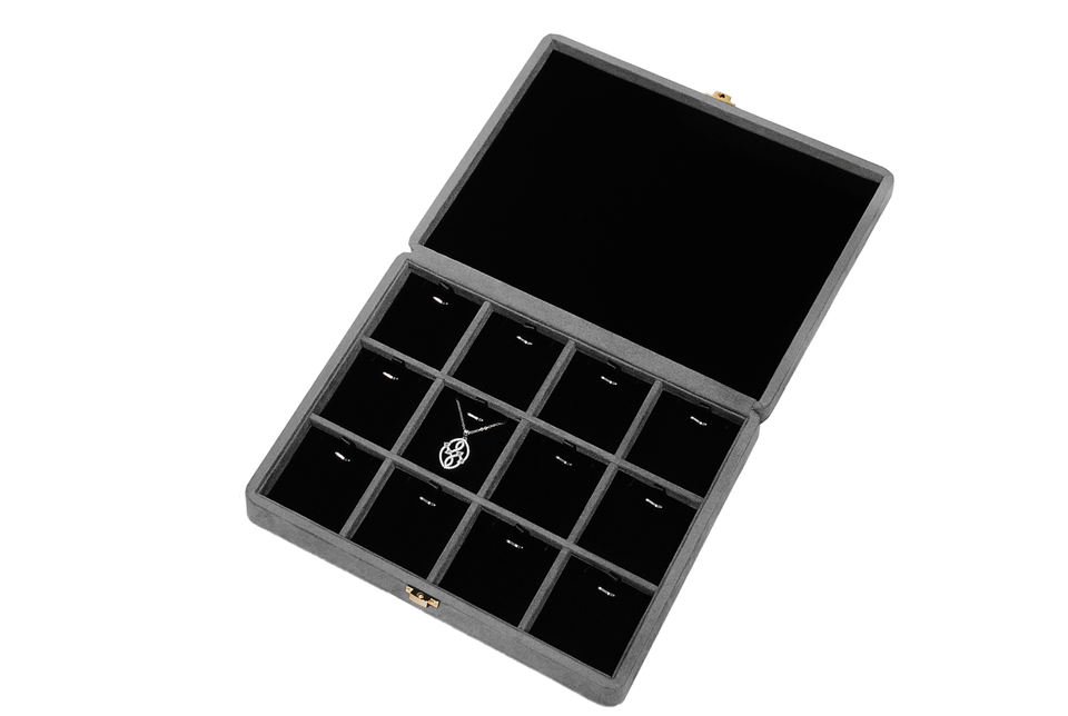 กล่องเก็บสร้อยคอพิมพ์ลายญี่ปุ่นทรงสี่เหลี่ยมสิบสองช่อง มุมโค้งมน โครงสร้างกระดาษกำมะหยี่แบบกำหนดเอง ขนาด 243x213x50 มม.