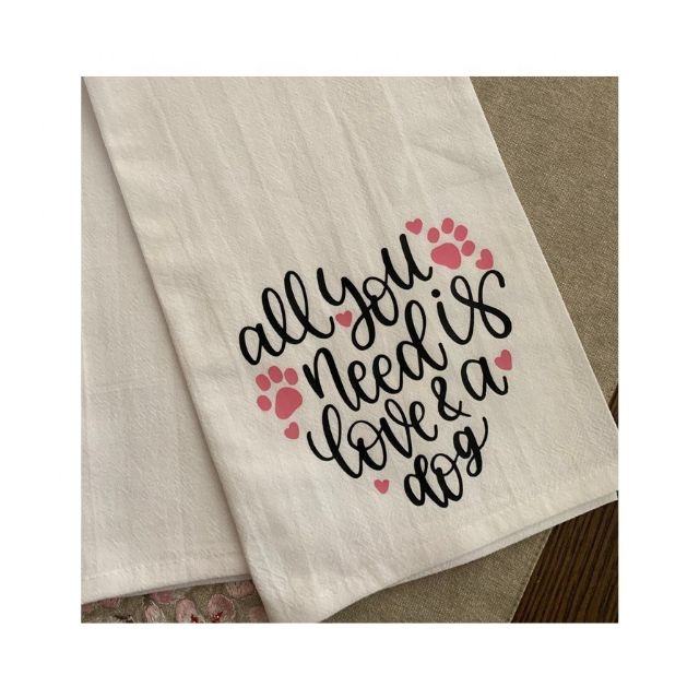 ผ้าทอลายทแยงทั้งหมดที่คุณต้องการคือความรักและสุนัขปักดิจิตอลสั่งทําสีออกแบบขนาดรูปร่างระเหิด 2024 ผ้าขนหนูชา
