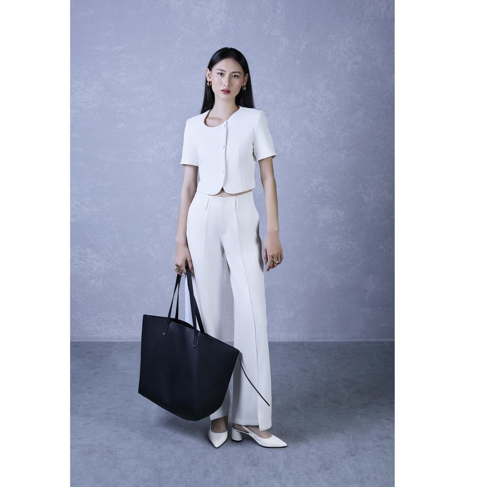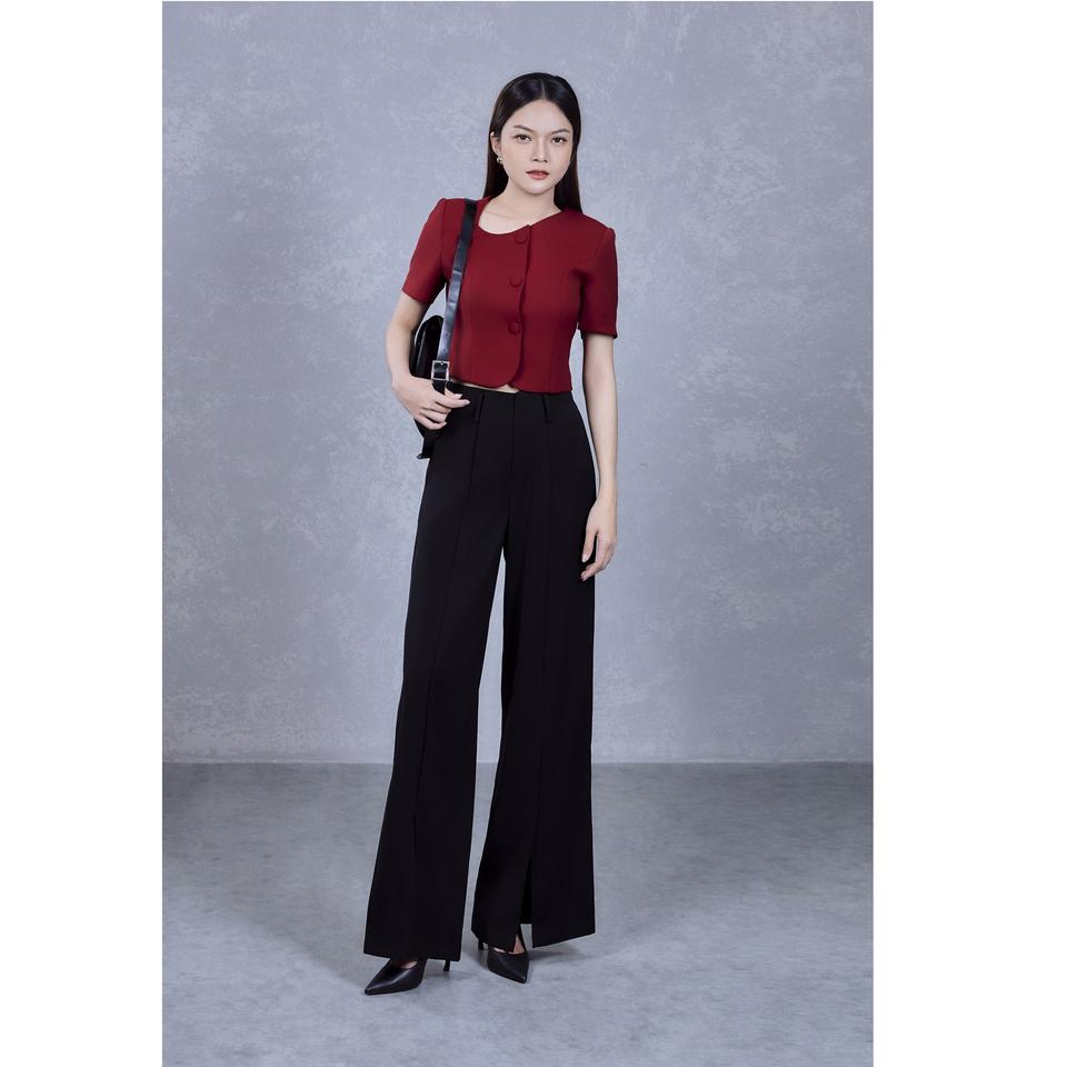 กางเกงขายาวทรงขากว้างผ้าทวิล (ผสมโพลีเอสเตอร์ (โพลีเอสเตอร์ + สแปนเด็กซ์)) แบบปกติ สไตล์เวียดนาม ดีไซน์หรู ผ่าหน้า ผ้าวอร์สเต็ด ยับยาก รุ่น KQ20