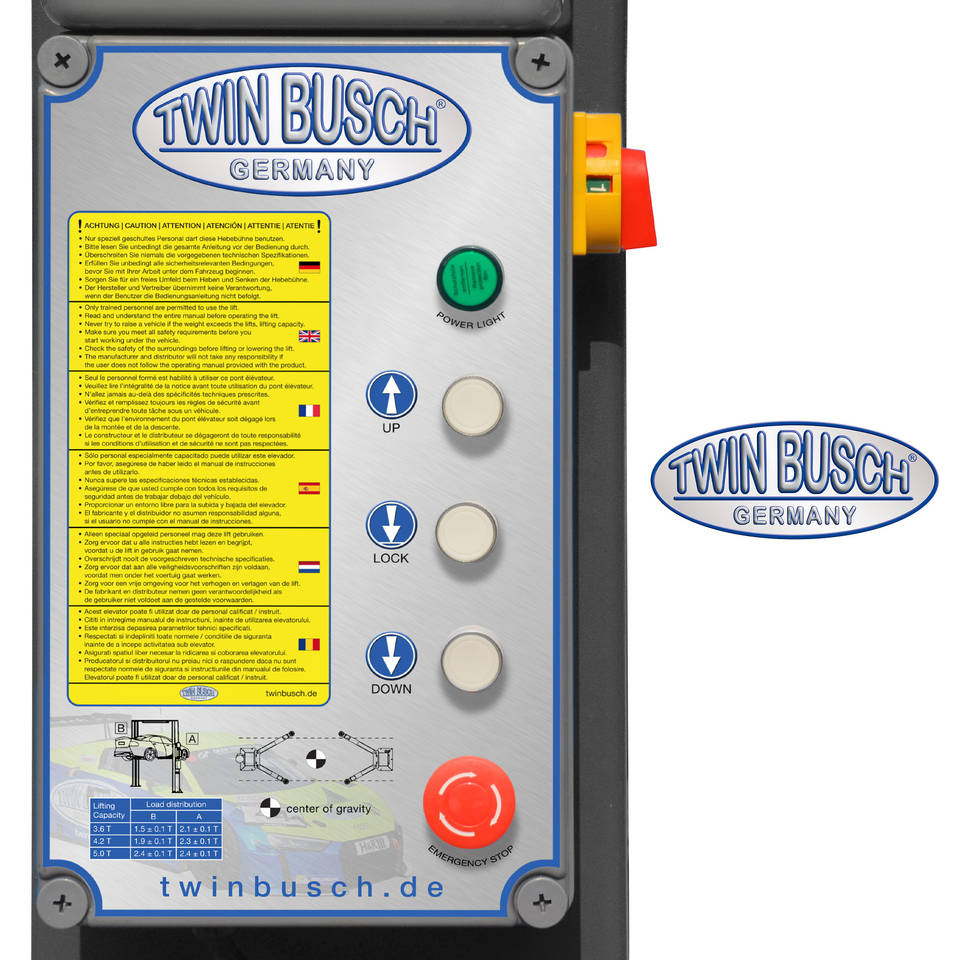Twin Busch ลิฟต์ยกรถแบบมืออาชีพ2-POST 3.6T ไม่มีสิ่งกีดขวาง-TW B3.9 PE 236