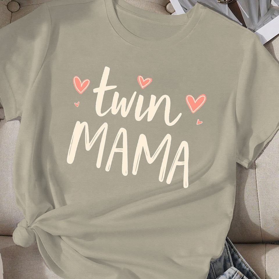 Twin MAMA Women's Casual Comfit T-Shirt Polyester Knitted Fabric With Printed Pattern