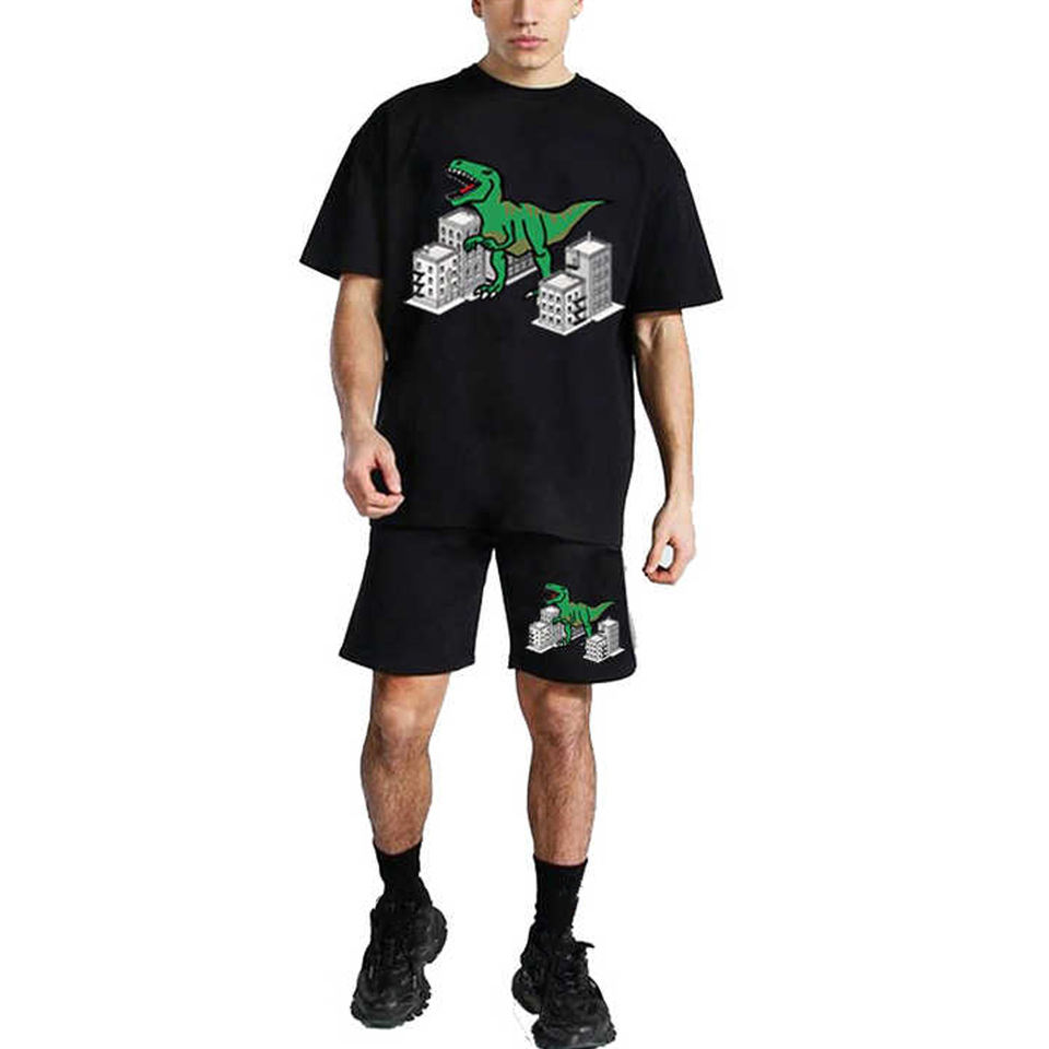 ชุดกางเกงขาสั้นและเสื้อยืดสำหรับผู้ชายชุดเสื้อผ้า100% ผ้าฝ้ายพิมพ์โลโก้ขนาดใหญ่พิเศษ