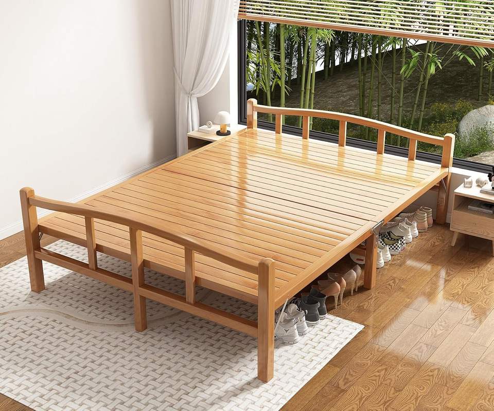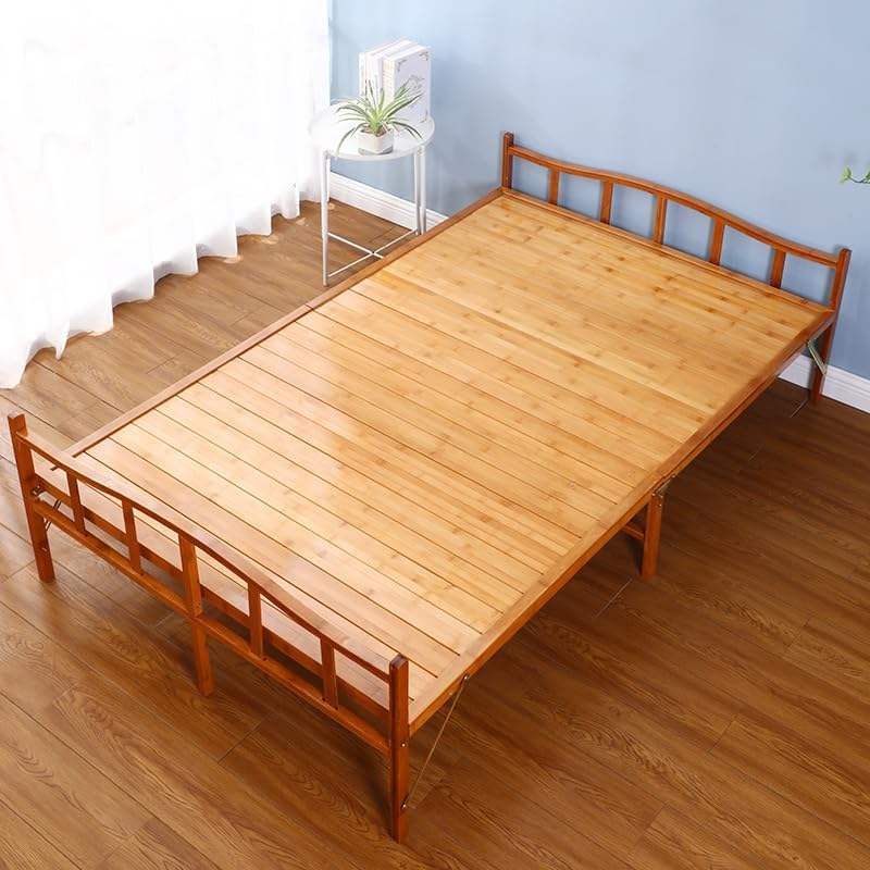เตียงพับได้ขนาดแฝดวัสดุไม้ไผ่แบบแข็งโครงเตียงไม่มีส่วนประกอบที่จำเป็นสำหรับงีบหลับในฤดูร้อนเตียงนอนแบบพับได้มั่นคง