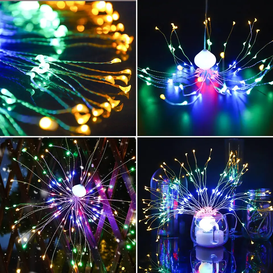 ไฟกระพริบแบตเตอรี่ดําเนินการแขวนแบบพกพางานแต่งงานStarburst House Luces De Navidadไฟพลุ
