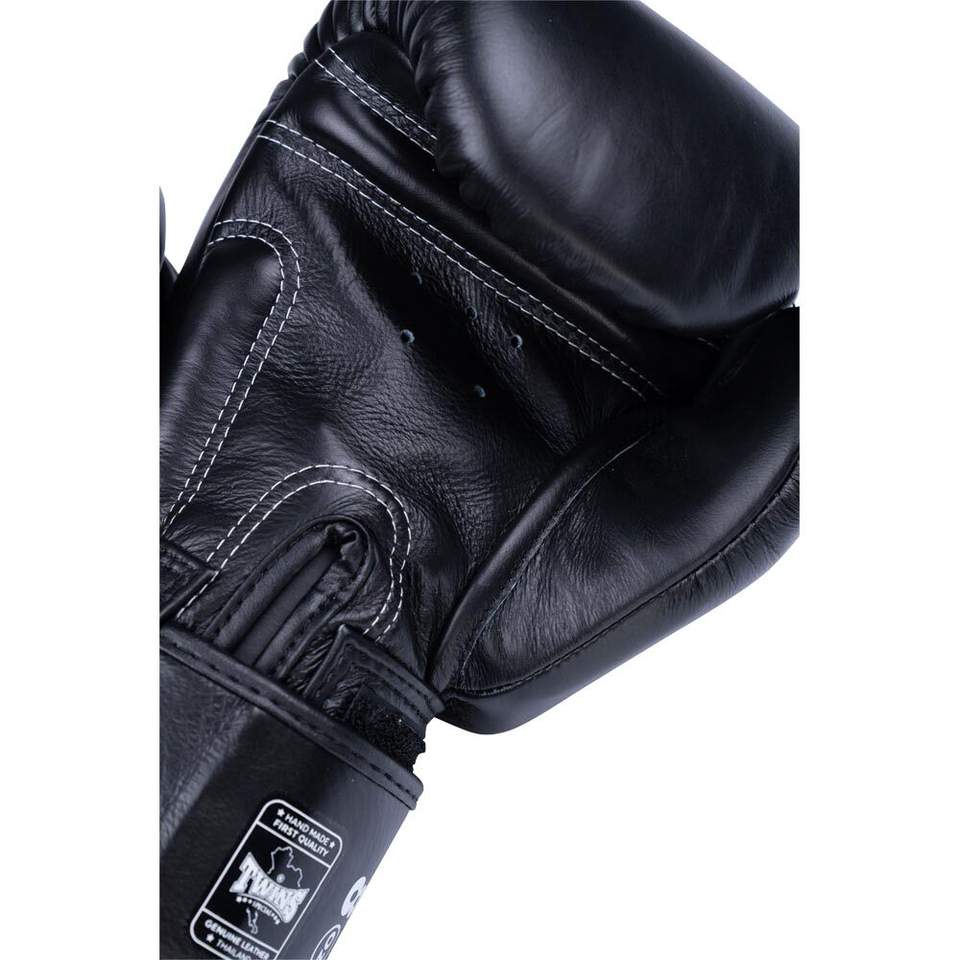 นวมชกมวยไทยหนังวัวแท้ทำมือ ยี่ห้อ Twins พร้อมที่จับมือแบบ Sanda ระบายอากาศได้ดีและซับเหงื่อ