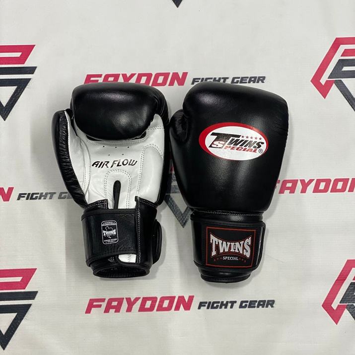 นวมชกมวยไทยหนังวัวแท้ทำมือ ยี่ห้อ Twins รุ่น Hook & Loop พร้อมที่จับมือ ระบายอากาศได้ดี ซับเหงื่อ