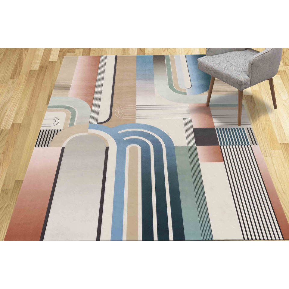 พรมขนสัตว์ลายทวิสต์ดีไซน์ พรมตกแต่งแบบร่วมสมัยกันลื่น ลายปะติดปะต่อ เป็นมิตรกับสิ่งแวดล้อม ด้านหลังทำจากยางลาเท็กซ์บาง