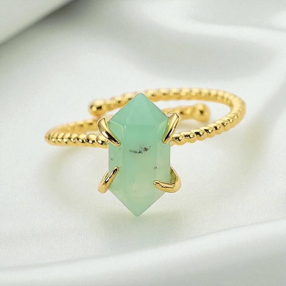 Twisted Band Hexagon Natural Chrysoprase Gemstone Ring Fashionable Adjustable Birthstone with Rose Gold Plating