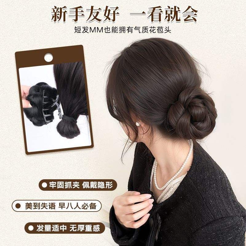 วิกผมทรงดอกไม้บิดเกลียว ทรงผมบันสูงสำหรับผู้หญิง สไตล์ถักเปียเหมือนจริง