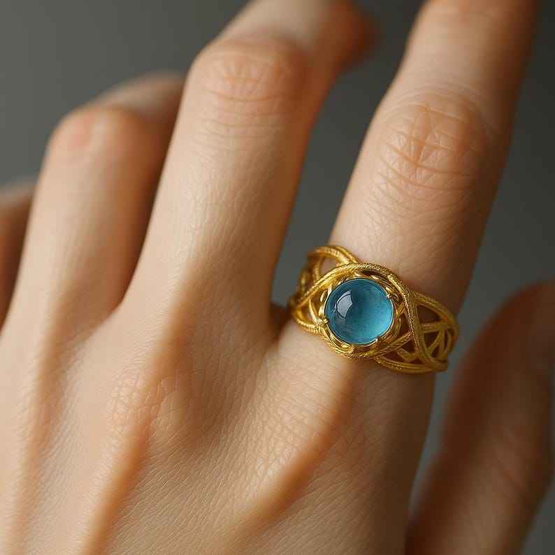 Keyword:Twisting Blue Topaz Ring Spiraled Graceful Sculpted Inspired Refined