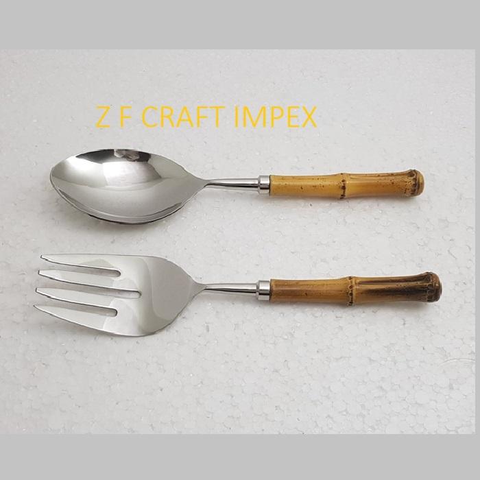 ช้อนตักสลัดสแตนเลสด้ามข้อต่อทำจากเรซินสีเงิน2สีเครื่องมือดีไซน์ใหม่