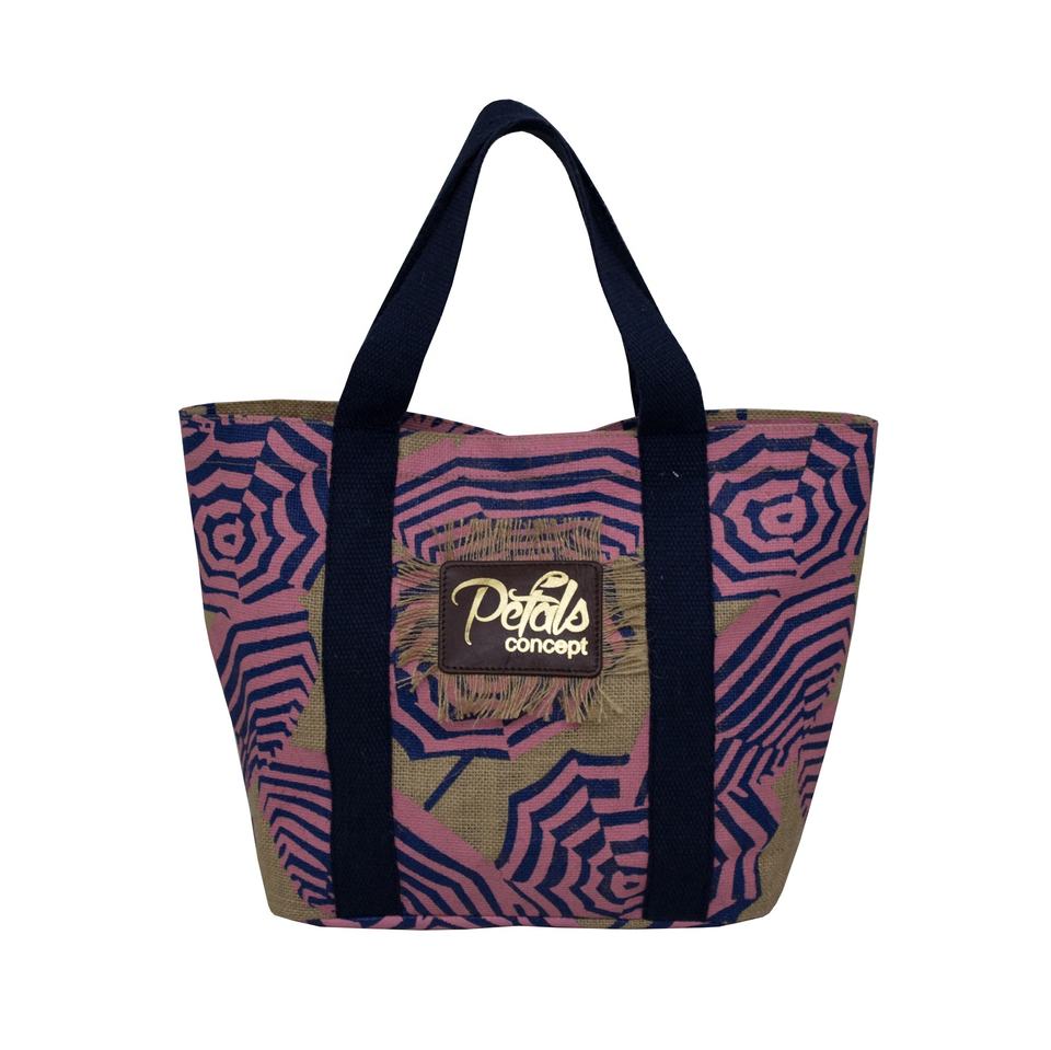 Two Colour Overall Umbrella Print Design Pattern Eco-friendly Reusable Strong Cotton Web Handle Magnet Button Closure PP Bag