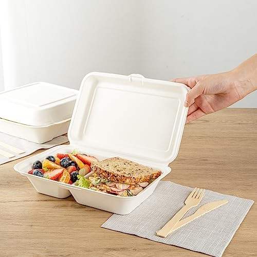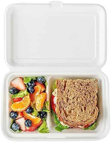 กล่องสลัดแบบใช้แล้วทิ้งที่มีฝาปิดถาดอาหารทำจากเยื่ออ้อยเป็นมิตรต่อสิ่งแวดล้อมแบบสองช่อง