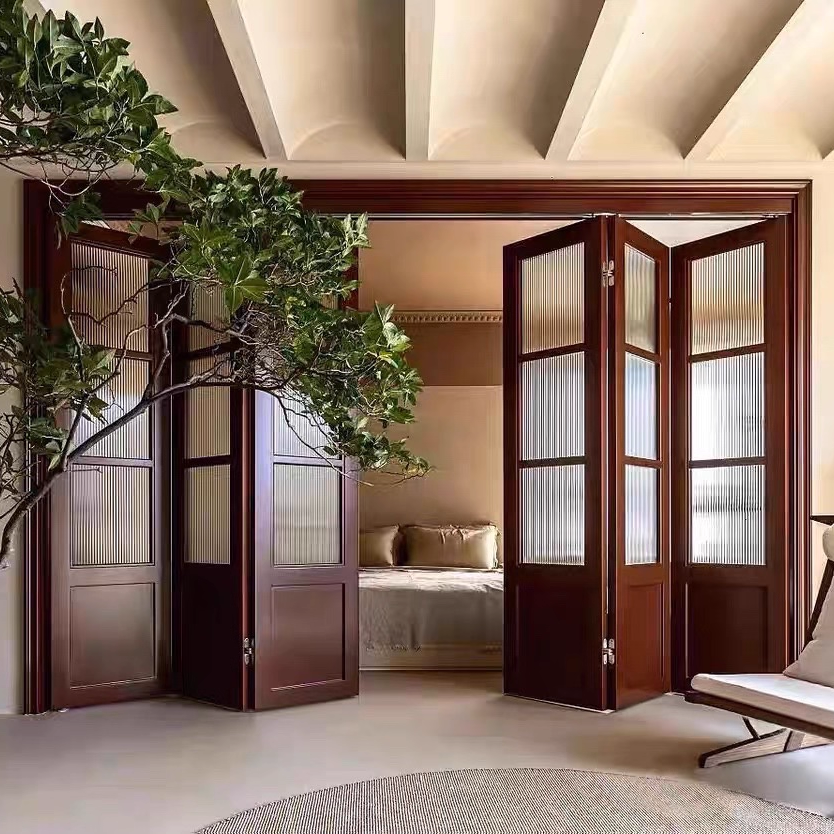 ประตูบานเลื่อนสี่ประตูแบบกดสองด้านอุปกรณ์สำหรับตู้เสื้อผ้าบานเลื่อนแบบไม่ใช้รางแบบพับได้สำหรับห้อง