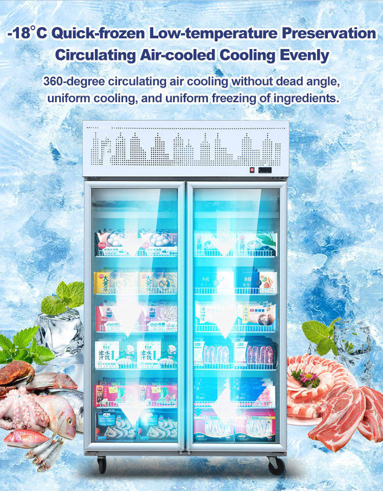 ตู้แช่ไอศกรีมแบบตั้งได้สองประตูตู้แช่650L แบบดิจิตอลตู้แช่ไอศกรีมเชิงพาณิชย์
