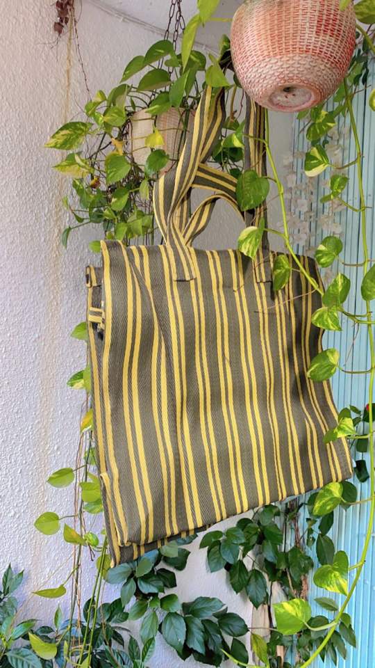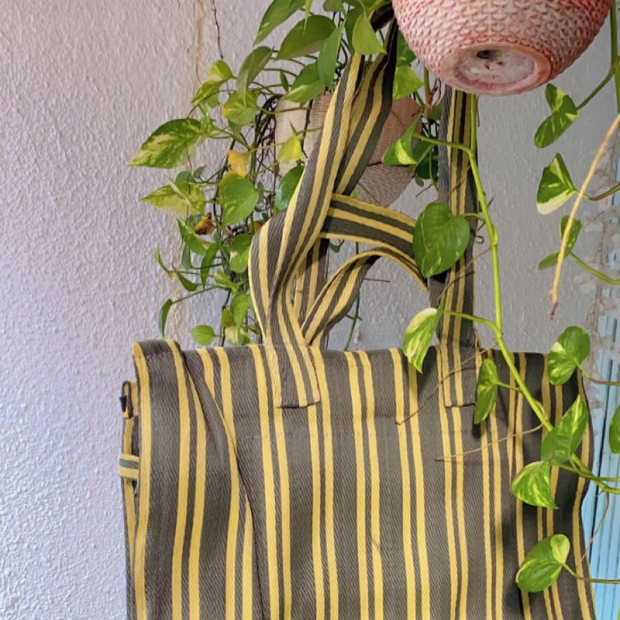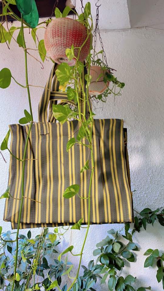 กระเป๋าช้อปปิ้งทำจากโพลีโพรพิลีนรีไซเคิลดีไซน์ลายขวางขนาดเล็กเป็นมิตรกับสิ่งแวดล้อม