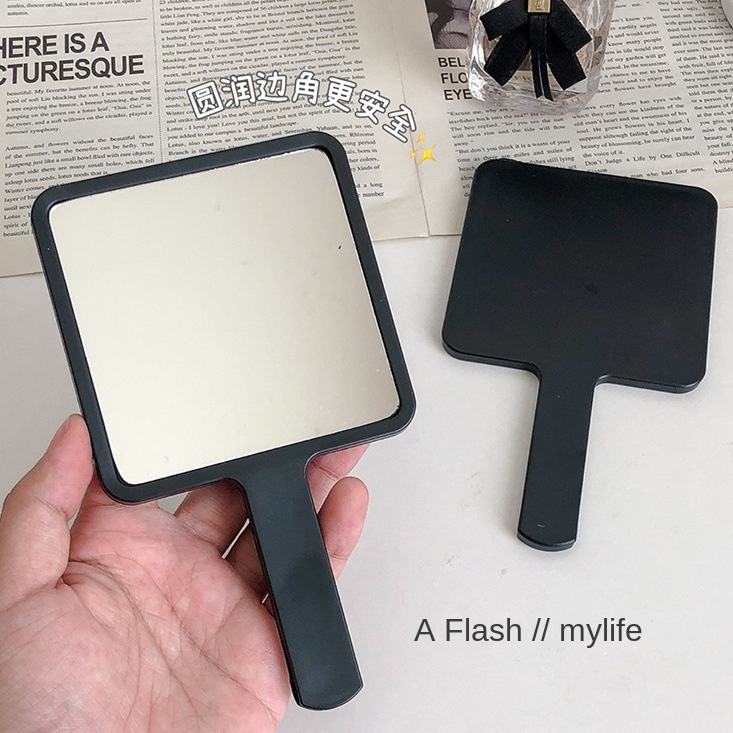 กระจกแต่งหน้าพลาสติกแบบถือสองด้าม ดีไซน์รูปหัวใจ ขนาดเล็ก สำหรับสาวๆ