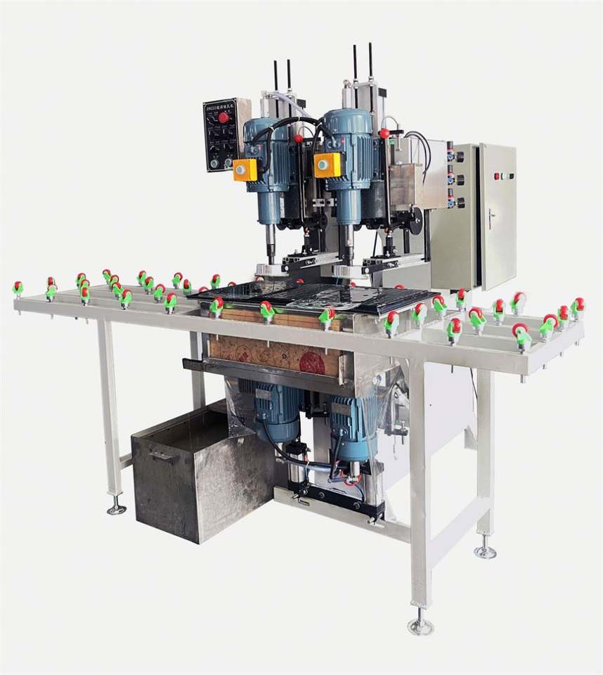 เครื่องเจาะกระจกแนวนอนอัตโนมัติสองหัวสำหรับประตูเครื่องเจาะรูแก้วอัตโนมัติเครื่องจักรเจาะแก้ว