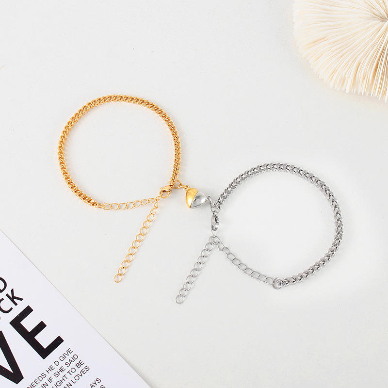 สร้อยข้อมือหัวใจแม่เหล็ก,โซ่สแตนเลส2หัวใจ One Soul 3มม. 4มม. สำหรับคู่รัก