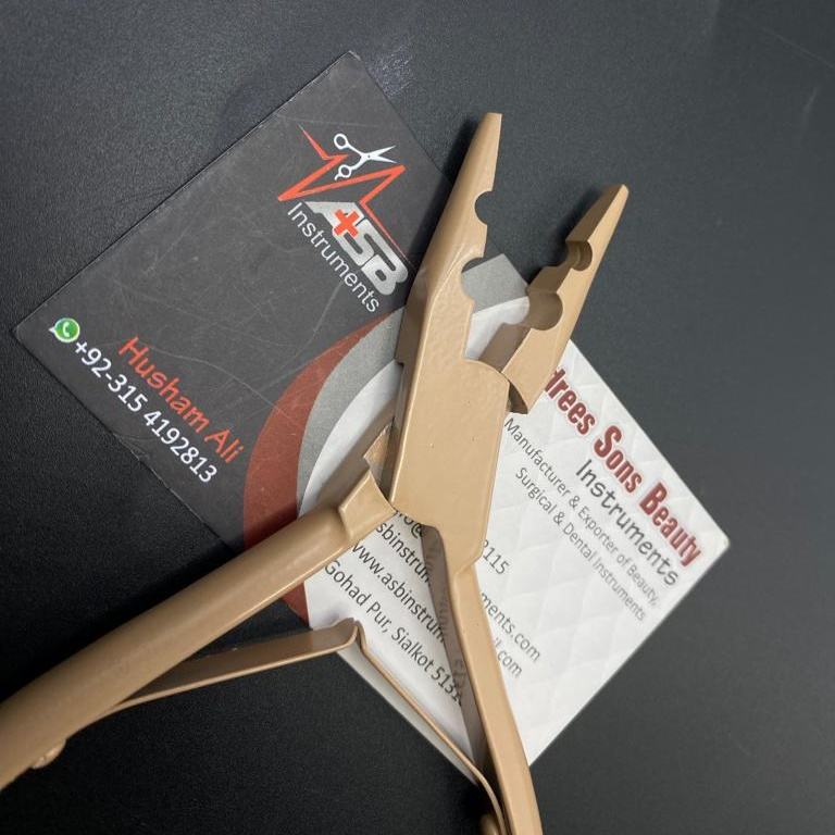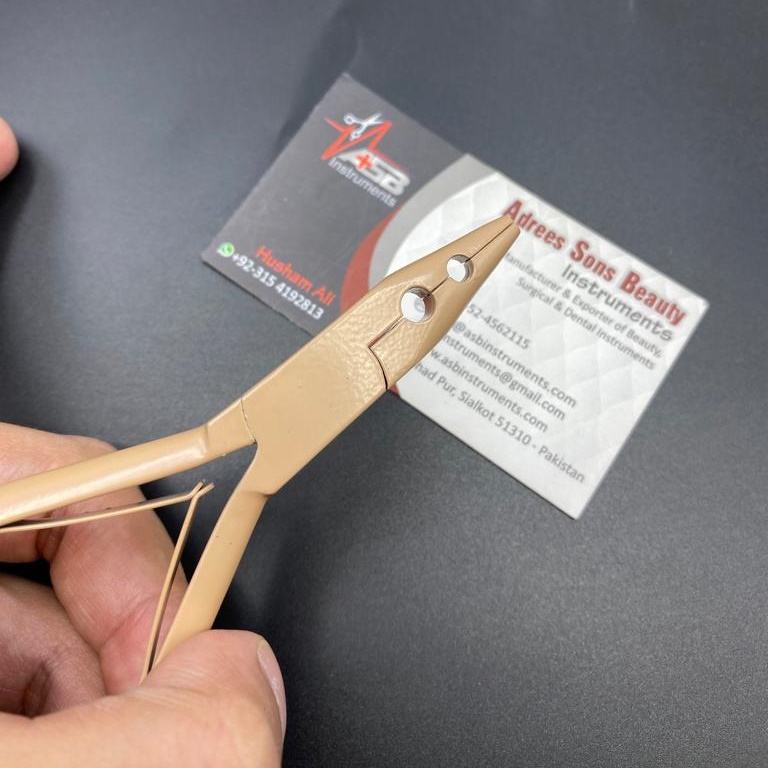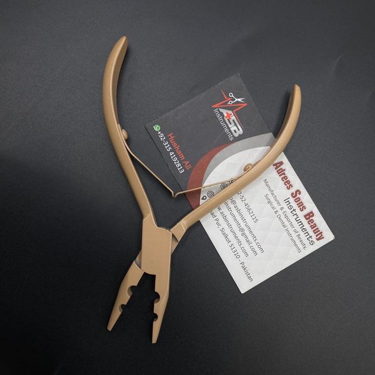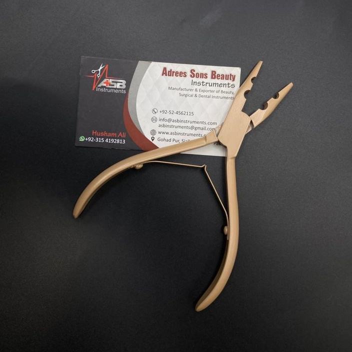 คีมต่อผมแบบสองรูสำหรับไมโครบีดส์ สีน้ำตาลอ่อน ทำจากสแตนเลสสตีล รับทำโลโก้ อุปกรณ์ต่อผม