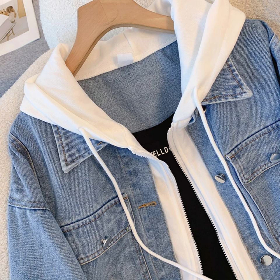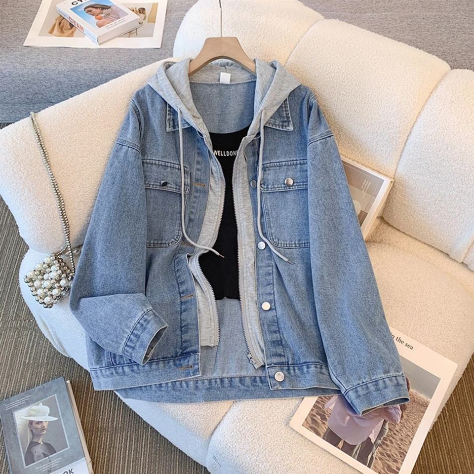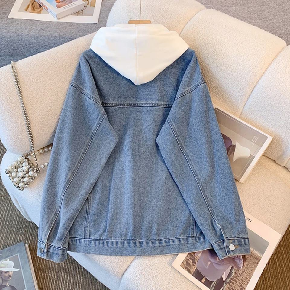 เสื้อแจ็คเก็ตยีนส์มีฮู้ดแบบสองในหนึ่งเดียว 2025 รุ่นใหม่ ทรงหลวม สไตล์เรโทร ใช้งานได้หลากหลาย | ปรับแต่งการซัก ลวดลาย และสีได้