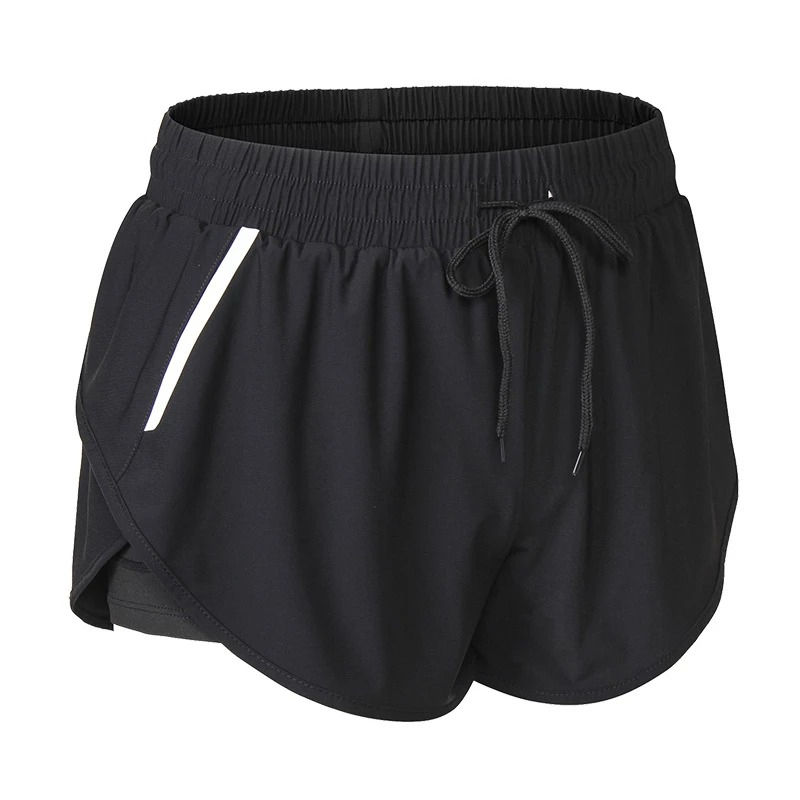 กางเกงขาสั้นผู้หญิงสองชั้นมีกระเป๋าด้านในสำหรับฤดูร้อน กางเกงกีฬาออกกำลังกายสำหรับผู้หญิง ปี 2026