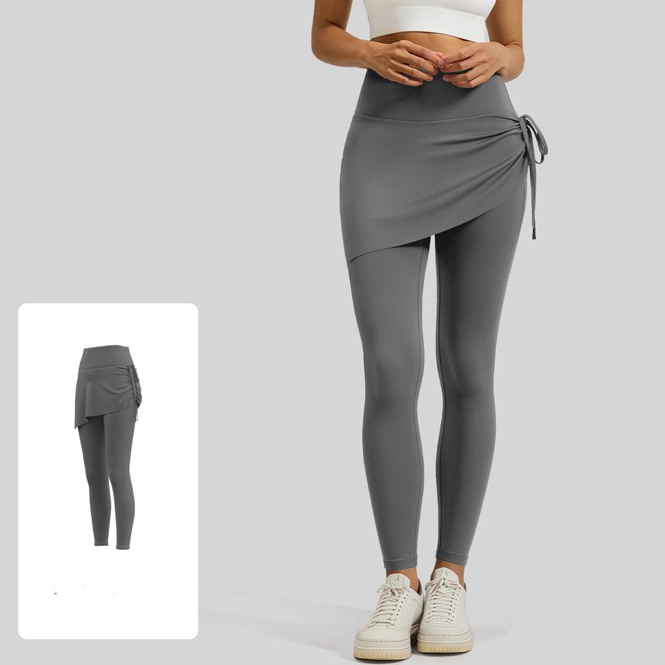 กางเกงกระโปรงโยคะเอวยางยืดสองคู่สำหรับผู้หญิง กระชับสัดส่วน ป้องกันการเห็นผ่าน แห้งเร็ว เหมาะสำหรับออกกำลังกาย ฟิตเนส เอวยาว