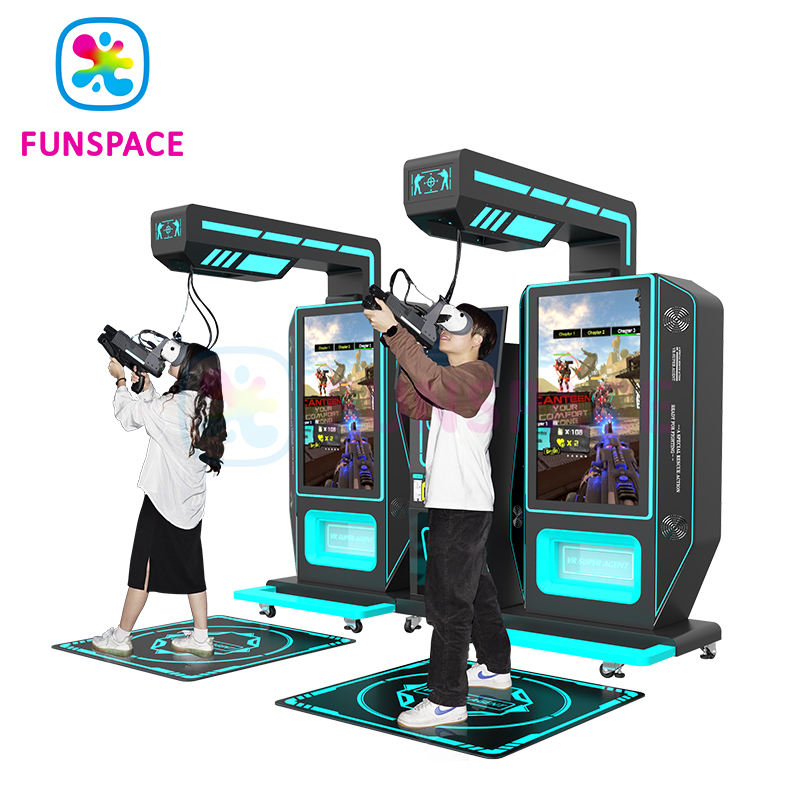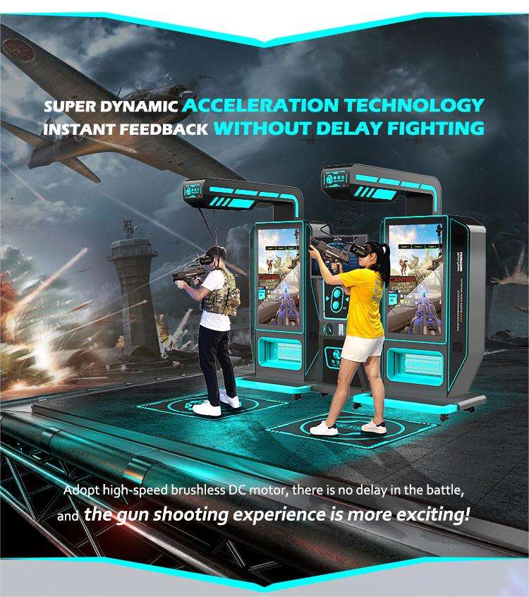 เครื่องเล่นเกมยิงปืนเสมือนจริงแบบอินเทอร์แอคทีฟสำหรับสองคน เครื่องเล่นเกม VR ยิงปืนในร่ม