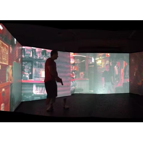 เกมยิงปืนเลเซอร์เสมือนจริงสำหรับสองคนเครื่องจำลองการฉายภาพแบบโต้ตอบหน้าจอขนาดใหญ่สำหรับสวนสนุก
