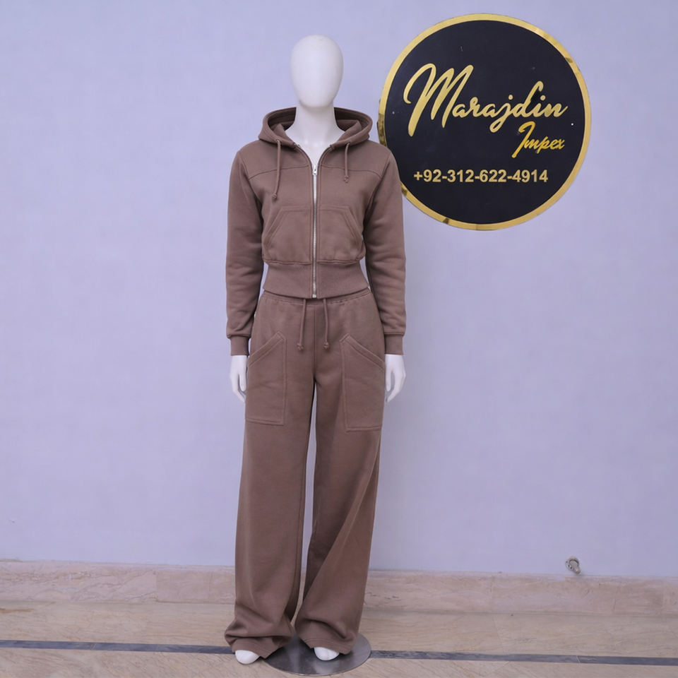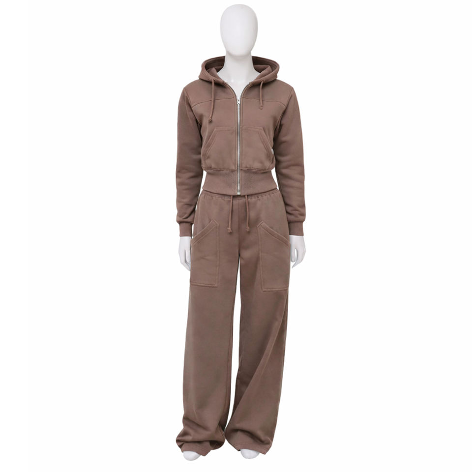 ชุดเซ็ตแทรคสูทผู้หญิงแบบสองชิ้น เสื้อฮู้ดซิปยาวปักลายผ้าฝ้ายฟลีซ สตรีทแวร์ กางเกงขายาวทรงหลวม สวมใส่สบายสำหรับฤดูหนาว
