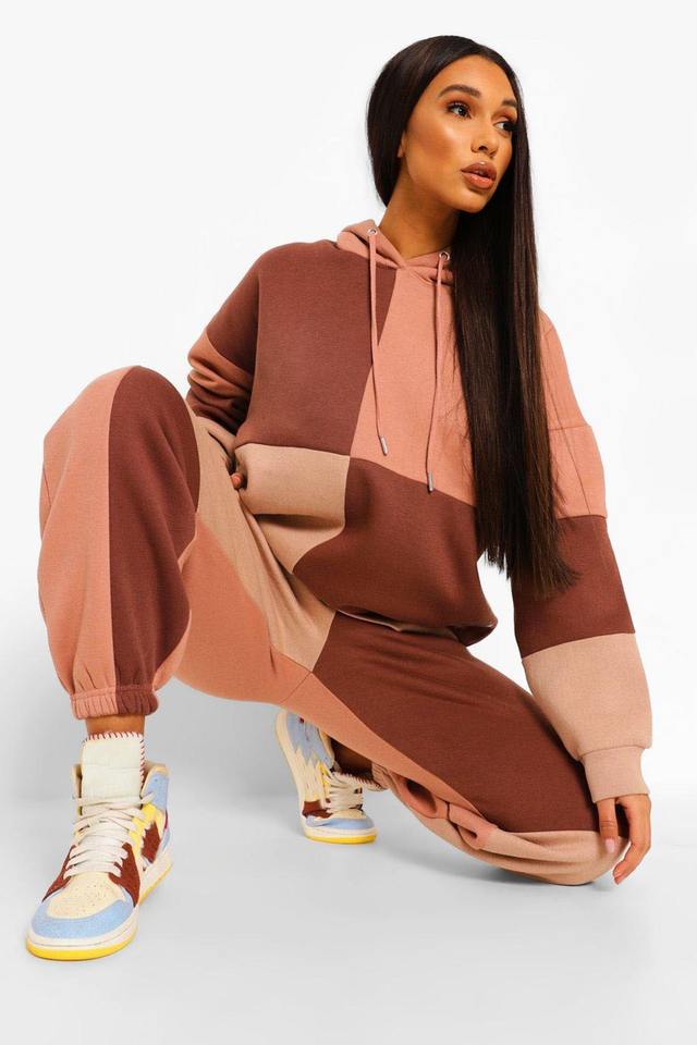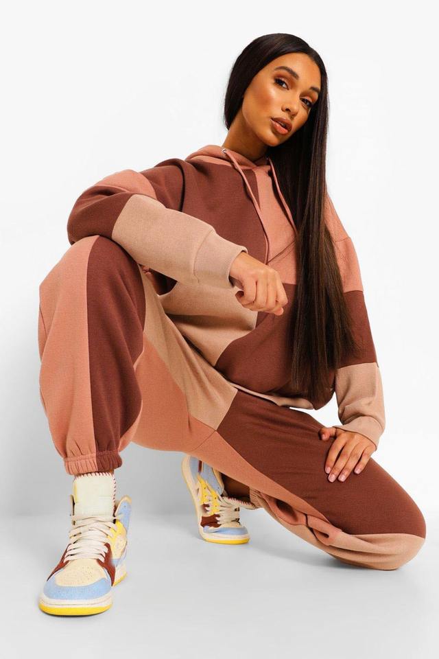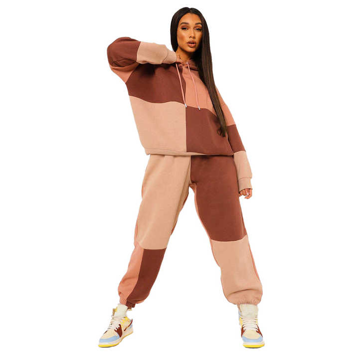 ชุดวอร์มสองชิ้นโอเวอร์ไซส์และกางเกงจ็อกเกอร์สำหรับผู้หญิงชุดวอร์มสีแบบปะต่อเสื้อผ้าแนวสตรีทลำลองเครื่องแต่งกายแฟชั่นฤดูหนาว